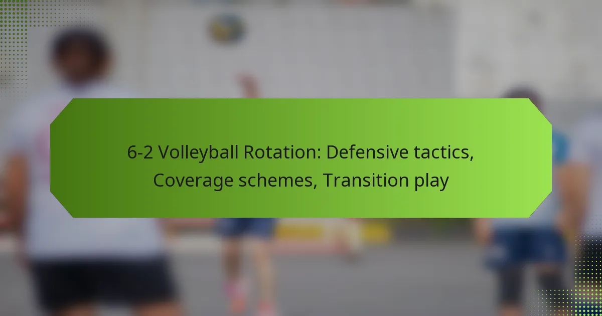 Implementing defensive tactics in the 6-2 volleyball rotation involves understanding player responsibilities and positioning to effectively counter opponent attacks. This system relies on a combination of strategic coverage schemes and transition play to maintain a strong defence throughout the match.